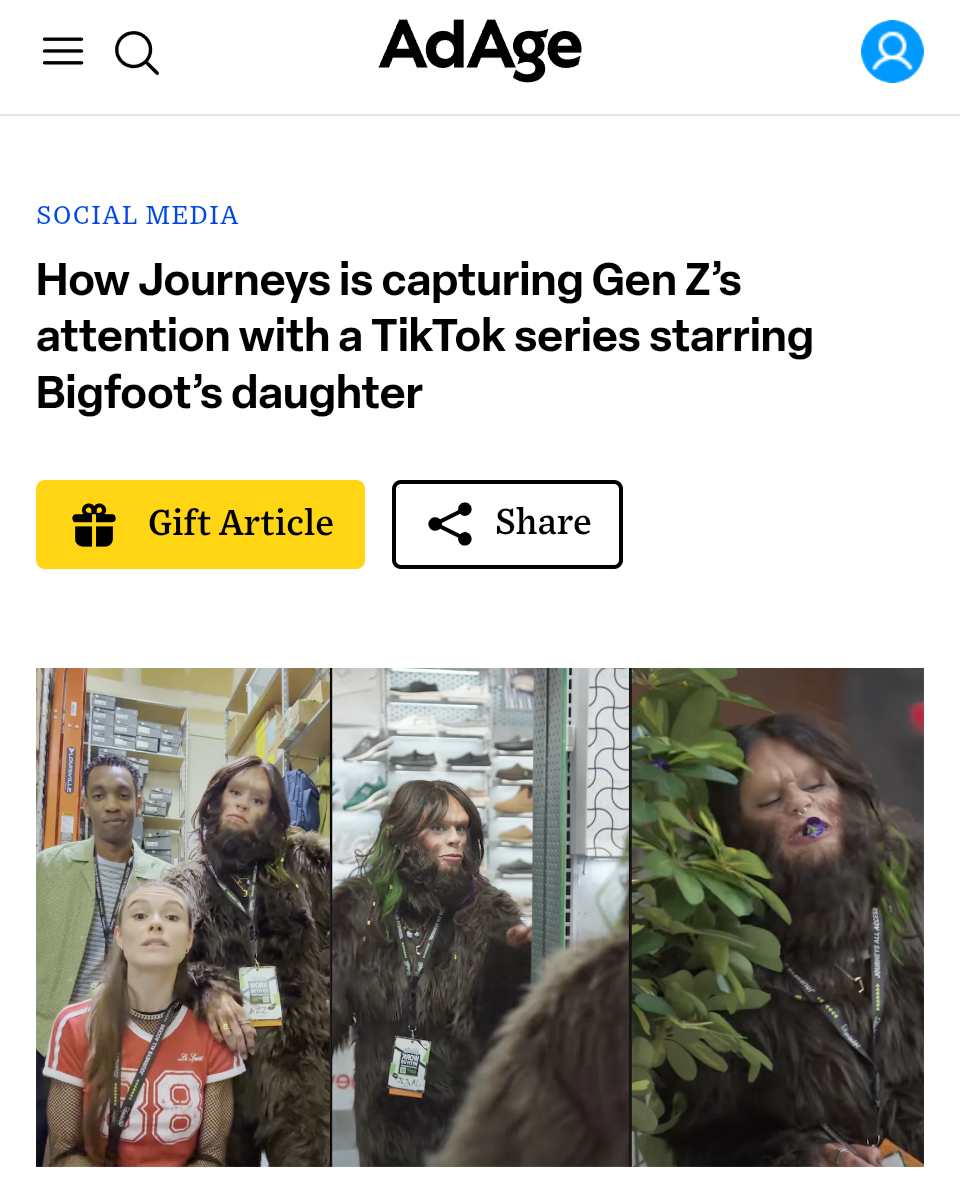 Absurd, self-aware, and grounded in real retail culture, Jazmine from Journeys showed up humbly as one of our own audience. Going against the grain by blending long-form narrative with platform-native behavior.